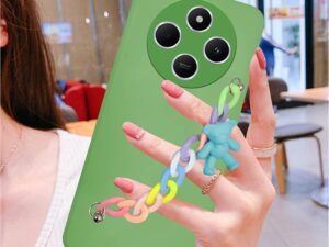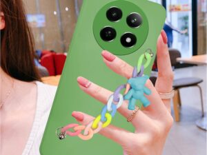 Jkobi Back Cover for Realme Narzo N65 5G Girls Case with Bracelet (Wrist Hanging Chain | Teddy Toy Cartoon | Matte Green)