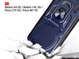 Luxe® Back Cover for Poco M7 5G / Redmi 14C 5G / Redmi A4 5G / Poco C75 5G | D10 Tough Armor Case | Sliding Camera Shield | 360° Protection | Kickstand Ring Holder | Military-Grade Shockproof