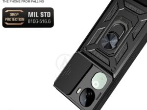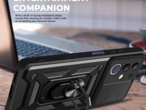 Luxe® Back Cover for Vivo V40e 5G / iQOO Z9s 5G | D10 Tough Armor Case | Sliding Camera Shield | 360° Protection | Kickstand Ring Holder | Military-Grade Shockproof Bumper Case