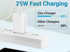MAK 25W Type C Charger Super Fast Adapter Compatible with Samsung Galaxy M05/M15/F15/A15/M35/A35/A55/M55| M34/M14/F34/F14/F54/A14/S24/S23/S21 Fe/S23 Fe,White