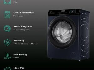 Haier 7 kg 5 Star Inverter Fully Automatic Front Load Washing Machine (HW70-IM12929BKU1, Anti Bacterial Technology, Black)