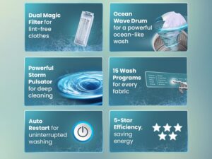 Haier 8 Kg 5 Star Fully Automatic Top Load Washing Machine with Oceanus Wave Drum, Magic Filter, 8 Wash Programs (ETL80-AES5, Brown Grey, Stainless Steel Drum, 15 Mins Quick Wash)