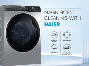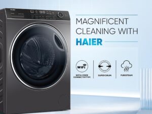 Haier 7 Kg 5 Star Powered by AI-DBT with PuriSteam, 525mm Super Drum Fully Automatic Front Load Washing Machine (HW70-IM12929BK, Inverter with In-Built Heater, Black)