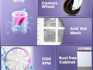 Haier 9 Kg 5 Star Semi Automatic Top Load Washing Machine with Oxyi Dry Technology and Spray Function, Vortex Pulsator (HTW90-186, Anti Rat mesh, Magic Filter, Castors, Burgundy)