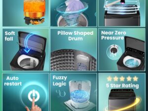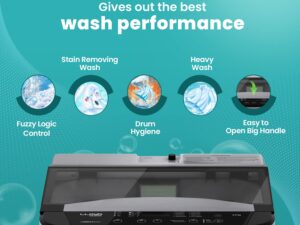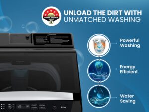 Haier SmartChoice 10.5 kg 5 Star Inbuilt Butterfly heater, Oceanus Wave Drum Washing Machine Fully Automatic Top Load (HWM105-H688BK,Black)