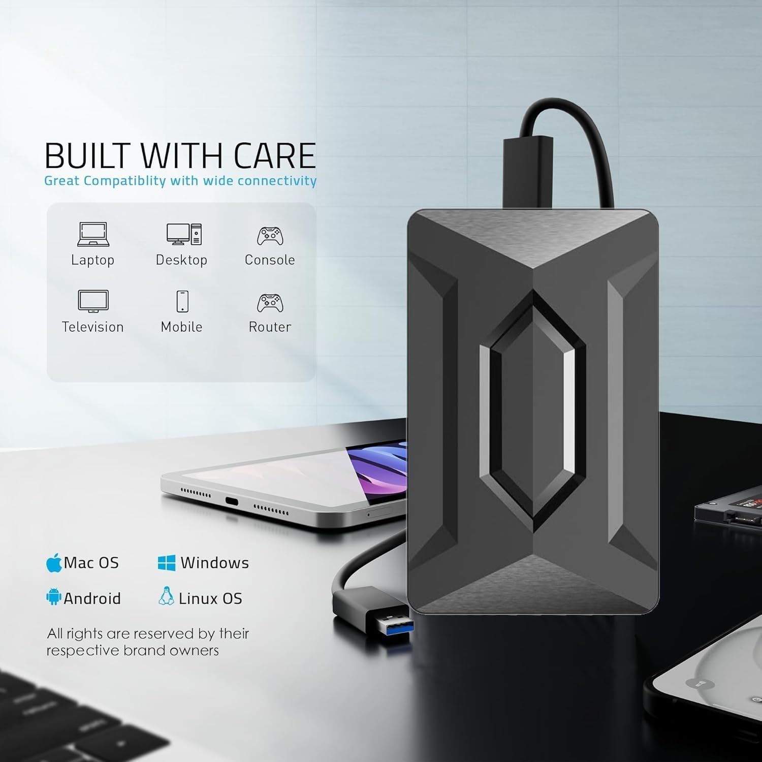 【Widely Application】- External hard drive can connect PC, laptop, smart TV, smart router, PS4, XBOX and other devices for storage expansion, file backup, data recovery and old hard disk recycling. Backwards compatible with USB 2.0/1.1; compatible with multi-platform operating systems such as Window/Mac/Linux