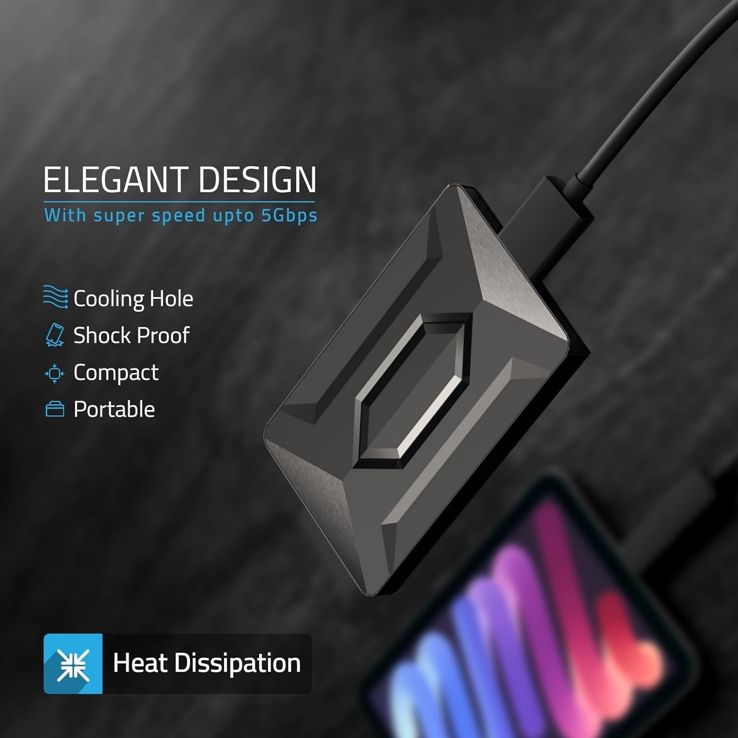1TB Portable External Hard Drive, USB 3.0, Hexagon Design, 2.5 Inch HDD, Fast Data Transfer.