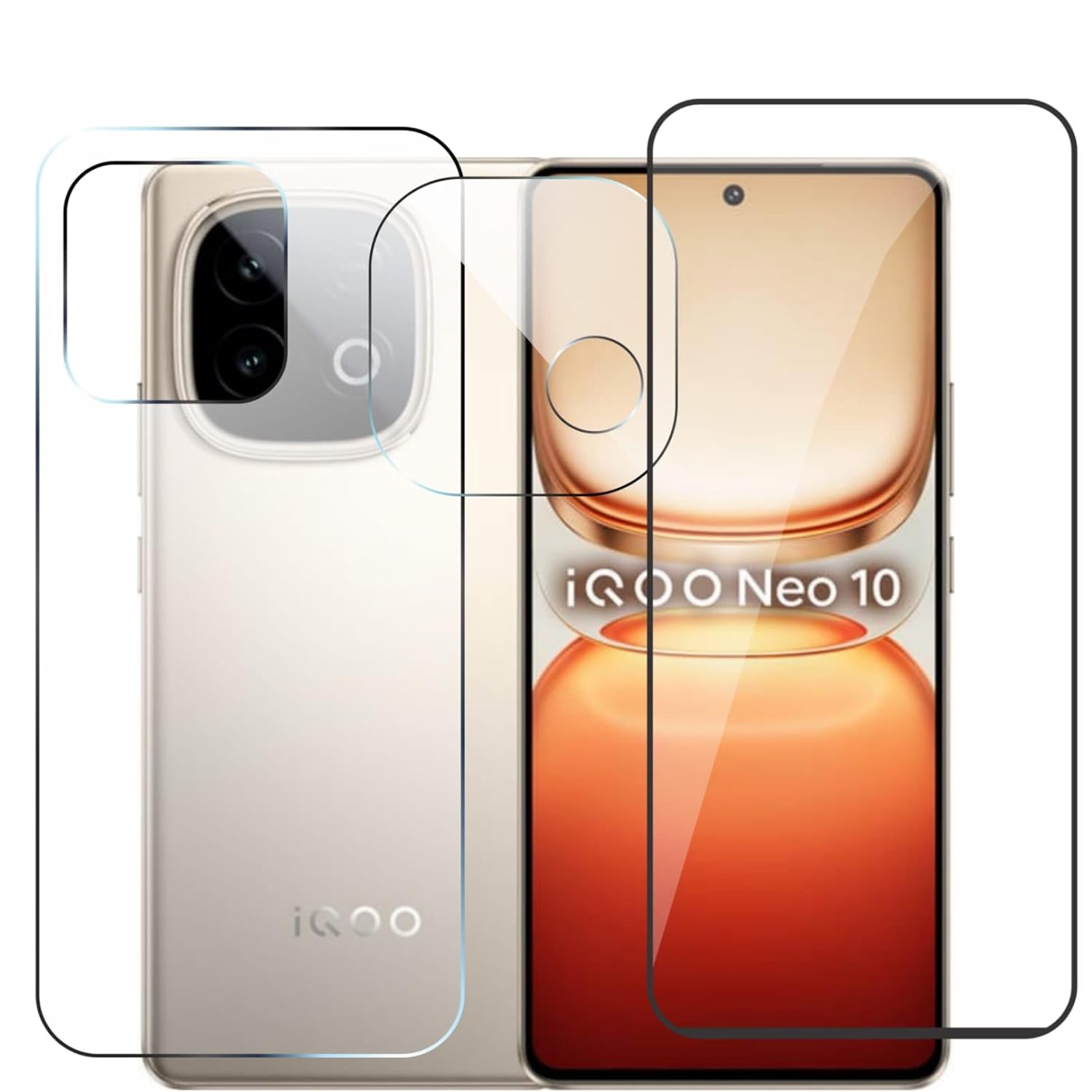 (3 in 1 combo) Newly Launched Tempered Glass Protector compatible for IQOO Neo 10 5G +Back membrane with Camera Lens Protector [Back guard+ tempered+ camera lens]