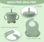 The ergonomic spoon and fork with wooden handles are gentle on gums and perfect for baby-led weaning, while the leak-proof sippy cup with dual handles helps toddlers practice independent drinking. The adjustable silicone bib with a wide food catcher pocket keeps clothes clean, making mealtime less messy for parents too.