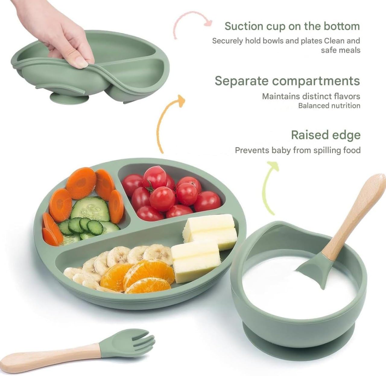 Crafted from 100% food-grade, BPA-free silicone, the set is soft, durable, and completely safe for your baby. The strong suction base on the plate and bowl helps prevent spills and messes by keeping dishes firmly in place, while the deep compartments make it easy to serve a variety of foods.