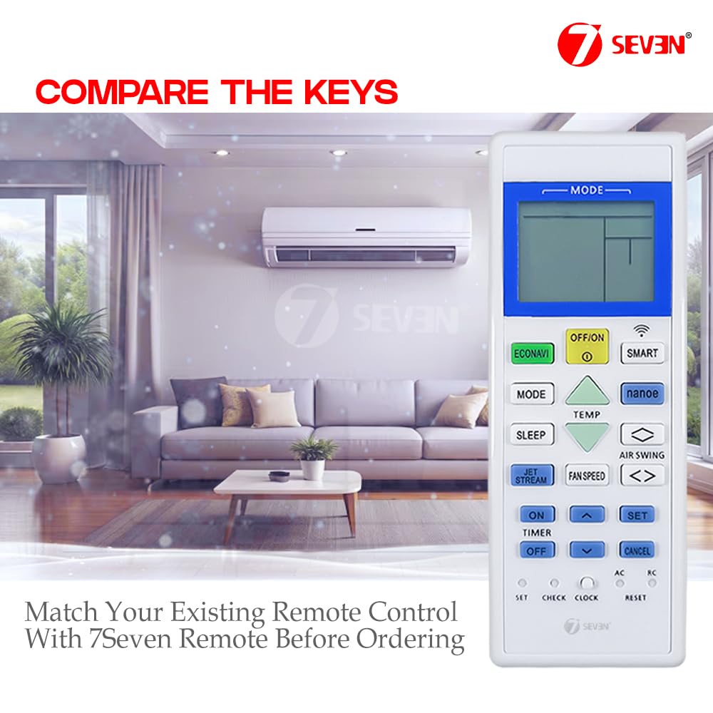 7SEVEN® Compatible with Panasonic AC Remote Control Model 157F Suitable for 1 1.5 2 Ton Split or Window Inverter Air Conditioner – Match Each Keys Exactly to Replicate Genuine Remote Function