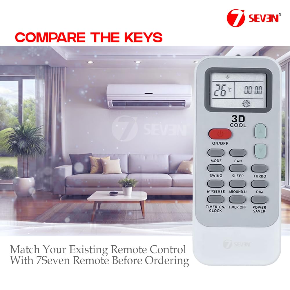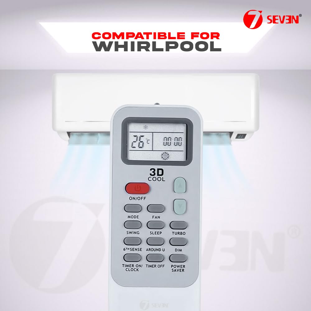 7SEVEN® Compatible with Whirlpool Ac Remote Control DG11J1 Model 129 with 3D Cool Suitable for 1 | 1.5 | 2 Ton Split and Window Air Conditioner – Match Each Keys Exactly with Existing Remote