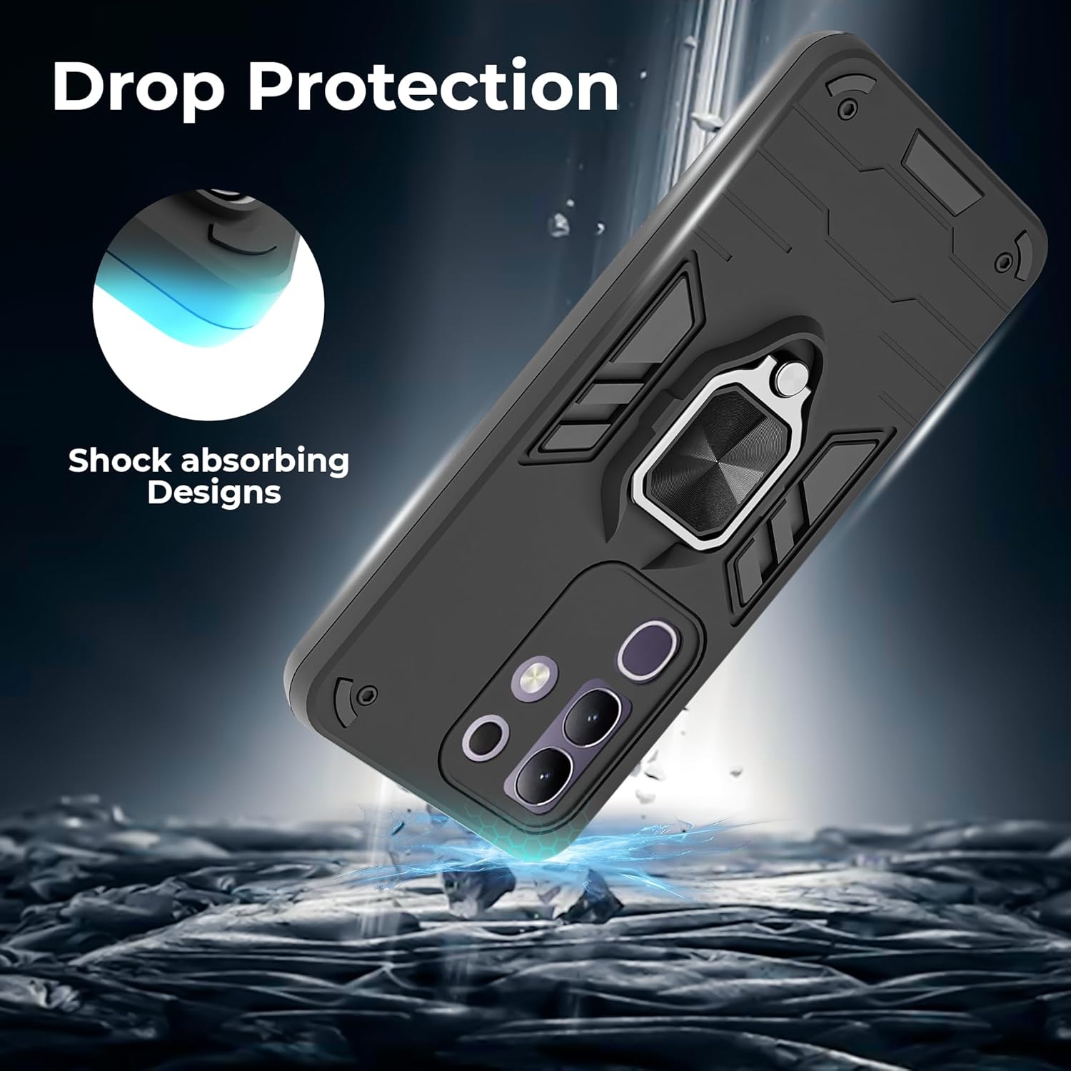 A rtistque Armor Bumper Back Case Cover for Vivo T4x 5G/ iQoo Z10x 5G | Stylish Ring Holder & Inbuilt Stand | Shockproof TPU Protective Design | 360 Degree | Vivo T4x 5G Back Cover – Black