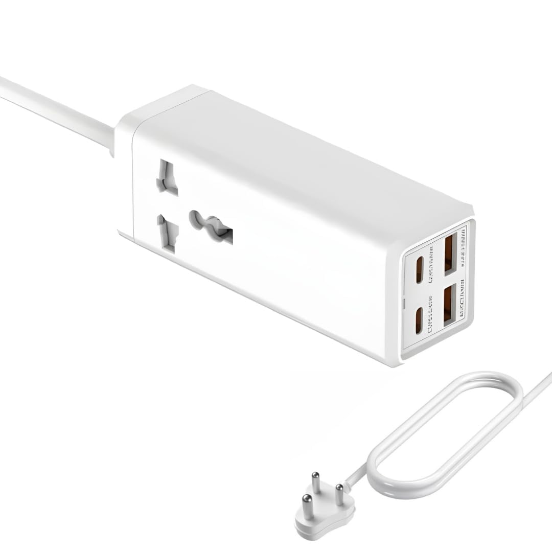 ABRALE 5 in 1 Super Charger 65W 2 USB Ports, 2 PD Type C Ports with 1 Power Socket Fit with Laptops,i-Phones, Mac-Book, Tablets, i-Pads, Power Banks etc