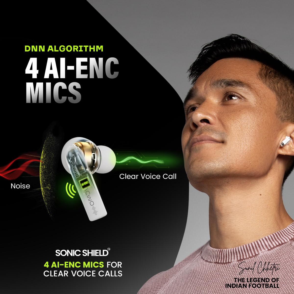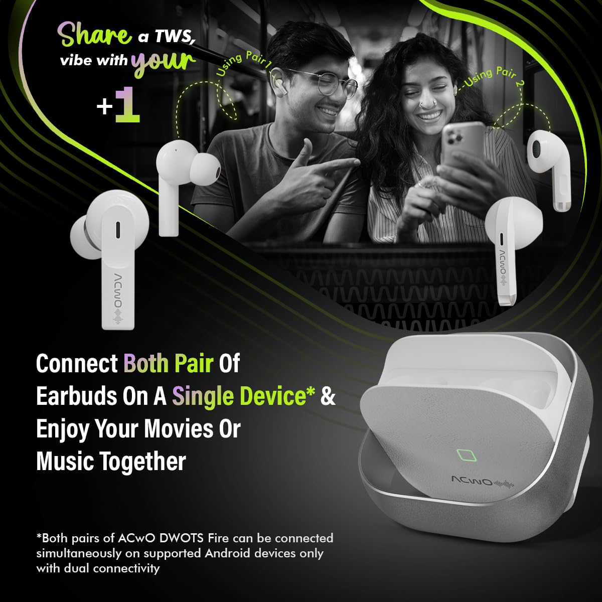 ACwO DwOTS Fire India’s First in-Ear + Half-in-in Ear Earbuds in one case, 3+3 EQ Modes, Wireless Charging Enabled, AI-ENC with Quad Mic (Cosmic Silver)