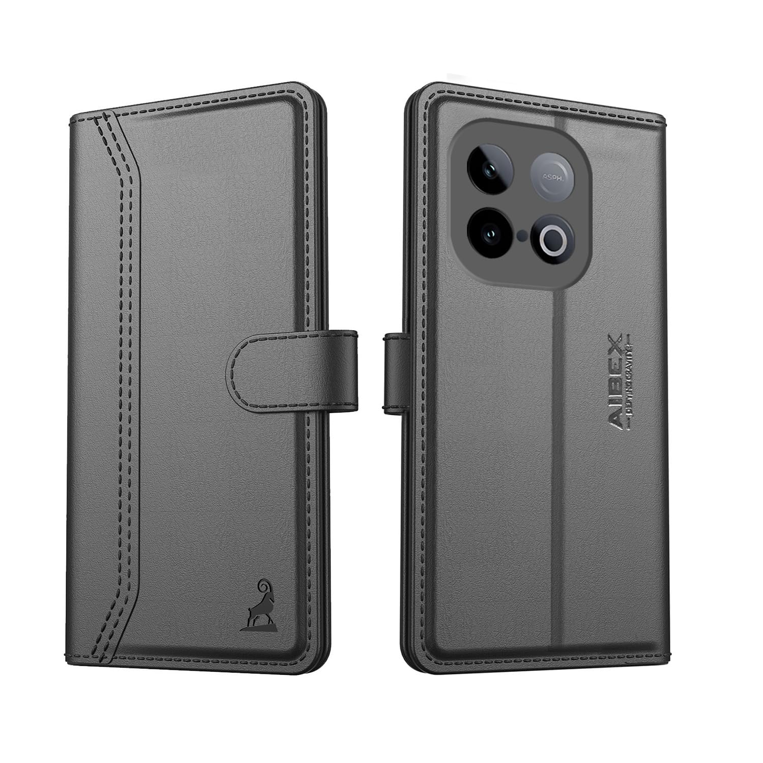 AIBEX ® Compatible for iQOO Neo 10 5G Flip Cover Leather Finish | Inside TPU with Card Pockets | Wallet Stand | Complete Protection Flip Case – Black