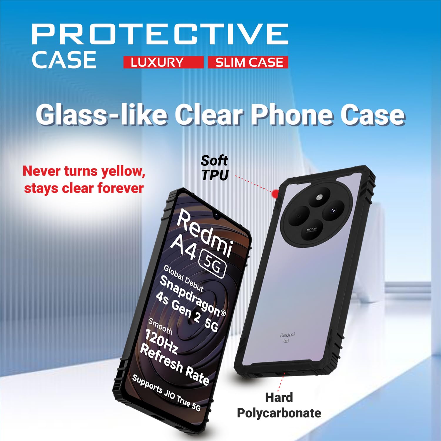 Keep your phone looking new and stylish with the AIBEX Crystal Clear Back Cover Case – designed exclusively for Poco M7 5G, Redmi 14C 5G, Redmi A4 5G, and Poco C75 5G. Engineered with premium non-yellowing TPU, this case offers high-grade transparency while protecting your device from daily drops, shocks, and scratches. The shockproof side cushions provide proven durability with drop resistance up to 16 feet, and its 360° full-body design ensures complete coverage including camera and screen. Designed for users who value both style and substance, this slim, lightweight case is easy to grip and complements the phone’s original aesthetics. The precise cutouts and responsive button covers ensure seamless functionality without compromise. Stay confident with a protective cover that works as hard as your phone does.