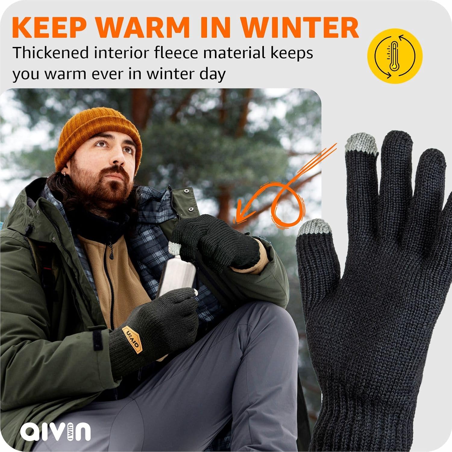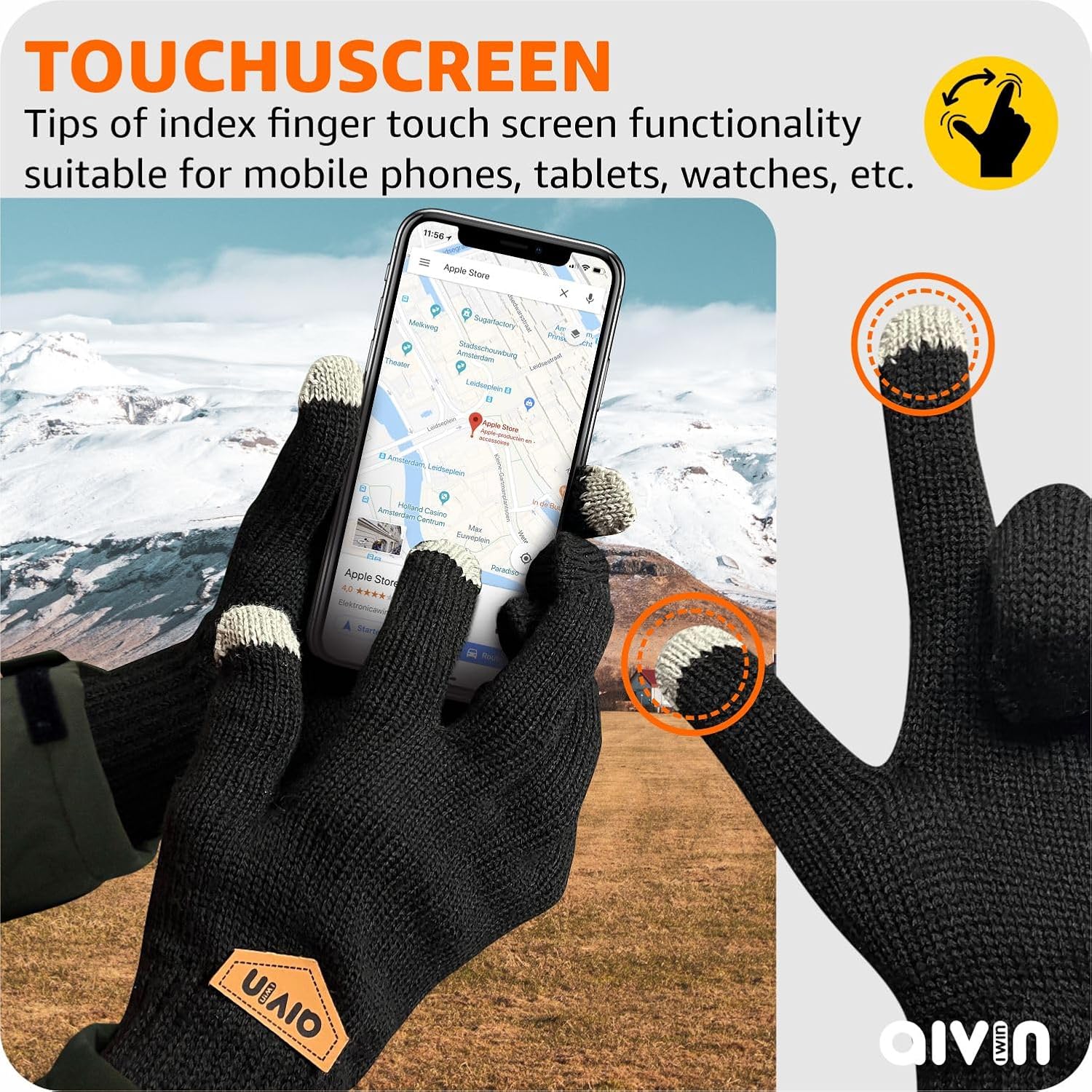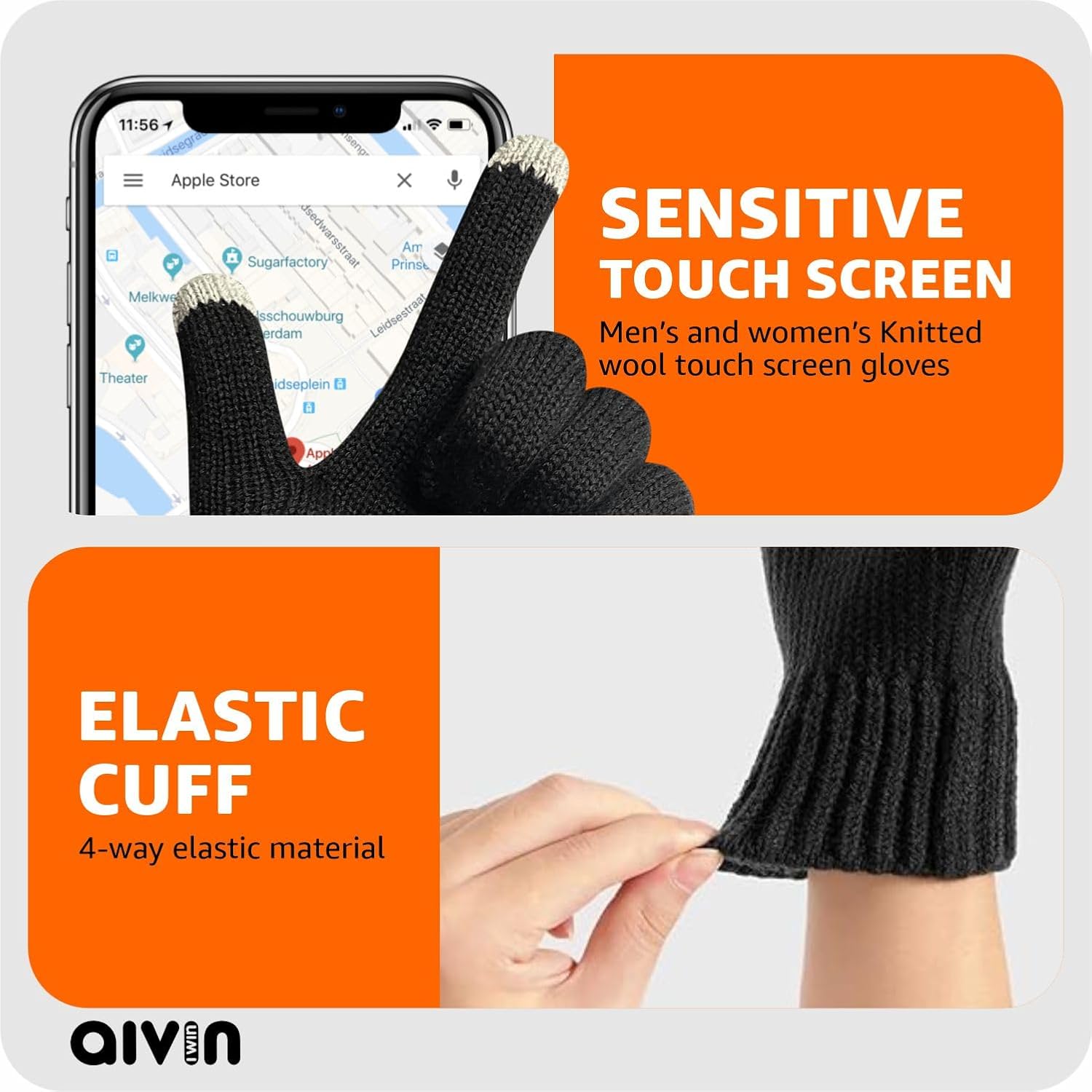 Aivin Swift Winter Touchscreen Gloves Unisex Warm Stretch Knitted Wool Mittens with Touch Screen Capability Woolen Comfort Full-Fingered Protection Stylish Solid Knit Double Layered