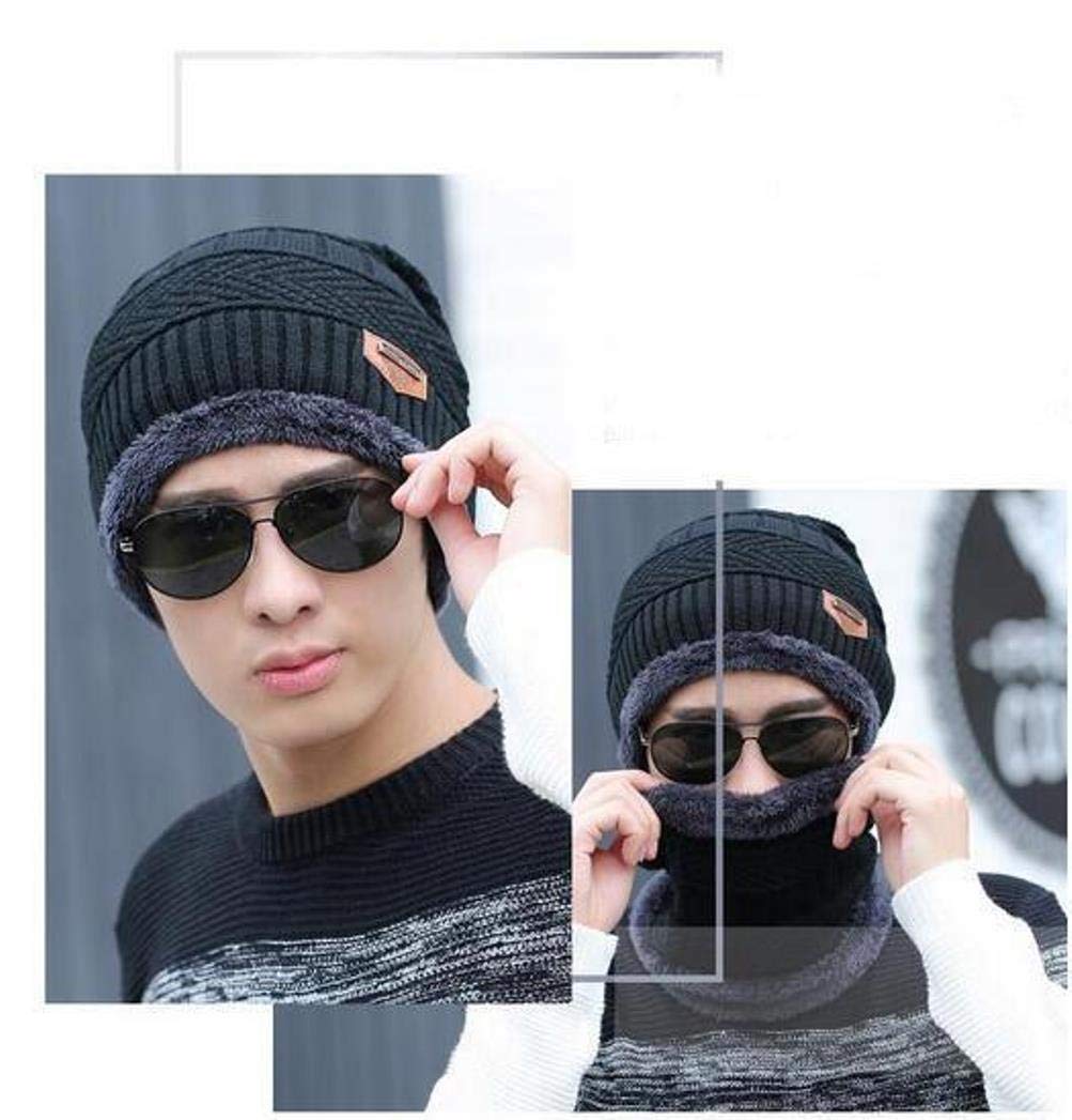 Alexvyan Black 1 Set Cap and Scarf Winter Soft Warm Snow and Air Proof Fleece Knitted Cap (Inside Fur) Woolen Beanie Cap + Neck Scarf for Men & Boy