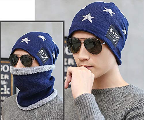 Alexvyan Blue Star Ultra Soft Unisex Woolen Beanie Cap and Scarf Set for Men Women Girl Boy – Warm, Snow Proof – 20 Degree Temperature