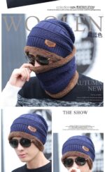 Alexvyan Men’s Woollen Fleece Knitted Fur Inside Imported Warm Soft Snow and Air Proof Beanie Winter Cap with Scarf (Blue)