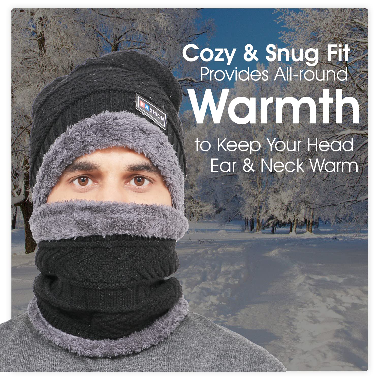 Allextreme Winter Beanie Cap Scarf Set Soft & Comfortable Thick Knitted Neck Warmer Biker Rider Climbing Sports Accessory for Men & Women