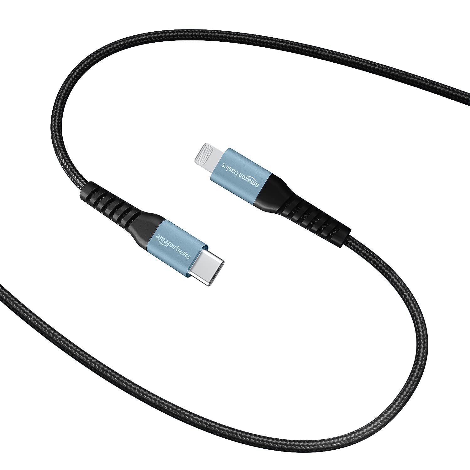amazon basics Aluminum With Nylon Braided Usb C To Lightning, Mfi Certified Charging Cable (Grey), Black, 1.02M