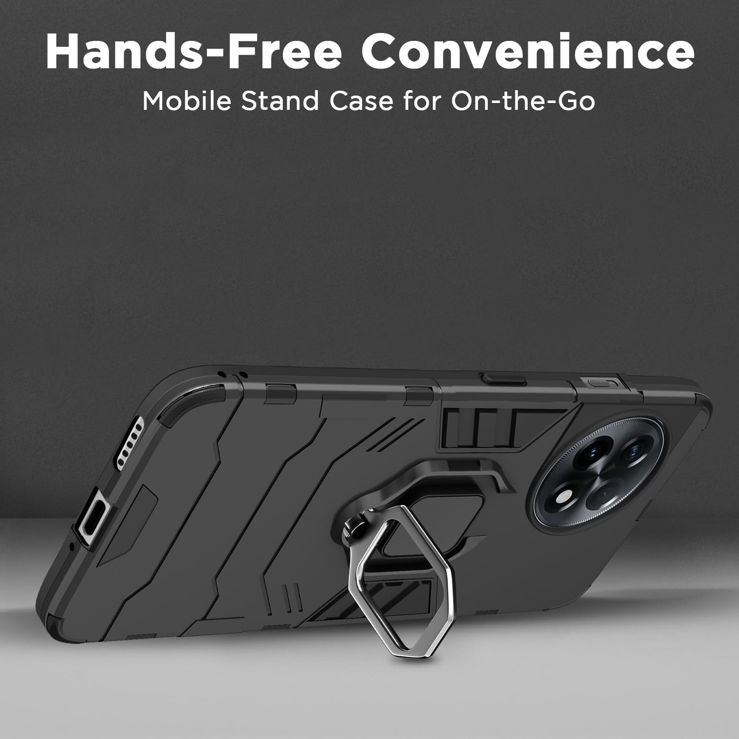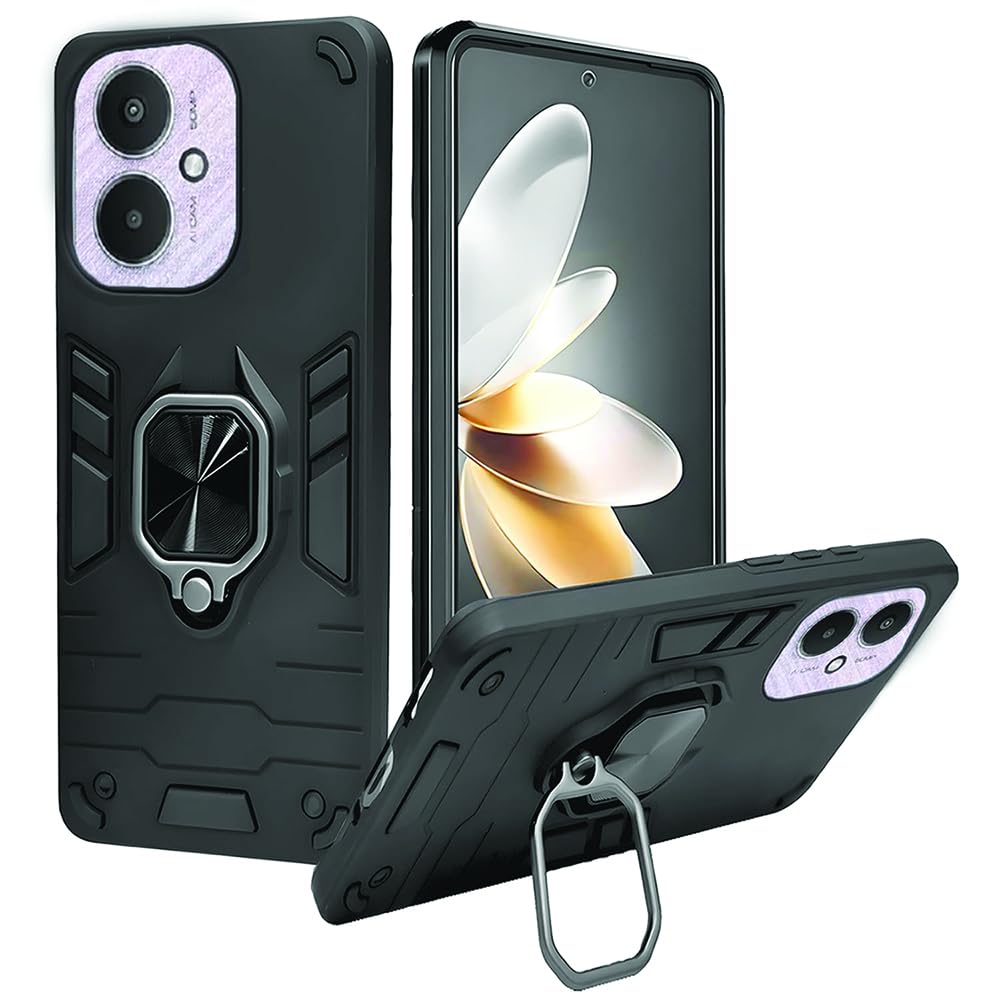amazon basics Armor Mi Redmi 13C 4G / 13C 5G / Poco C65 / Poco M6 5G Bumper Back Case Cover | Ring Holder & Kickstand | 360 Degree Protection Back Case for Redmi 13C 5G (Black)