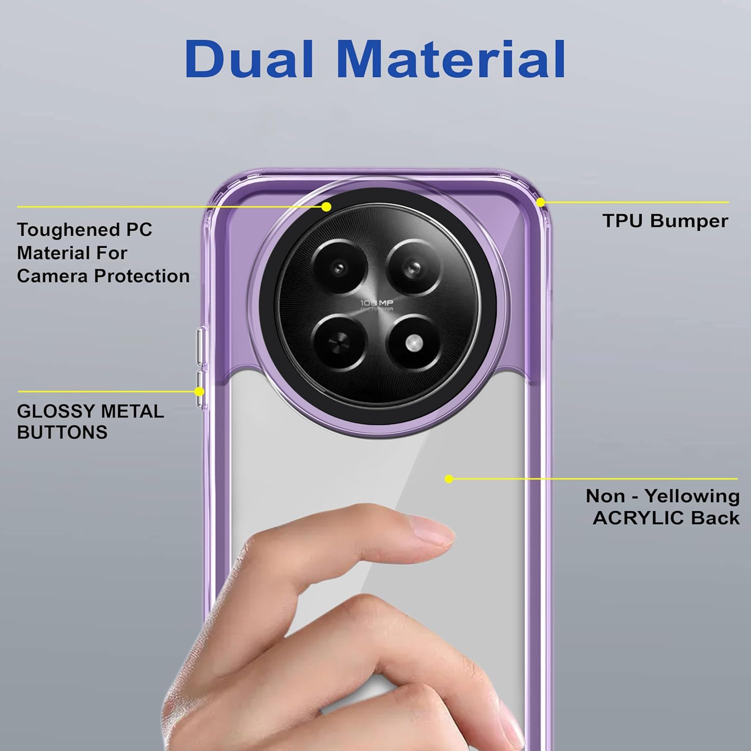 [Material] The Edge technology fusing made of Superior Quality TPU Material, Translucent back panel made from Imported Polycarbonate that does not get Yellow and gives a Premium Touch & feel.