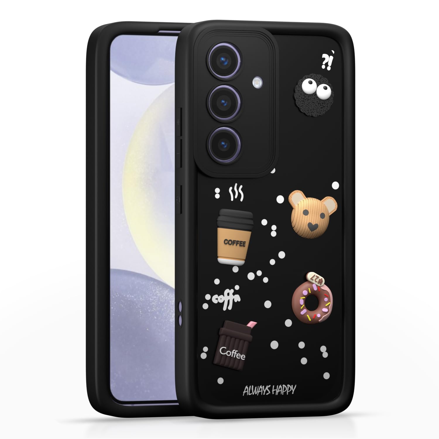 Amazon Basics Back Cover for Samsung Galaxy S24 5G | Cute Fun Cartoon 3D Bear Silicone Full Body Protection Bumper Cover (Black)