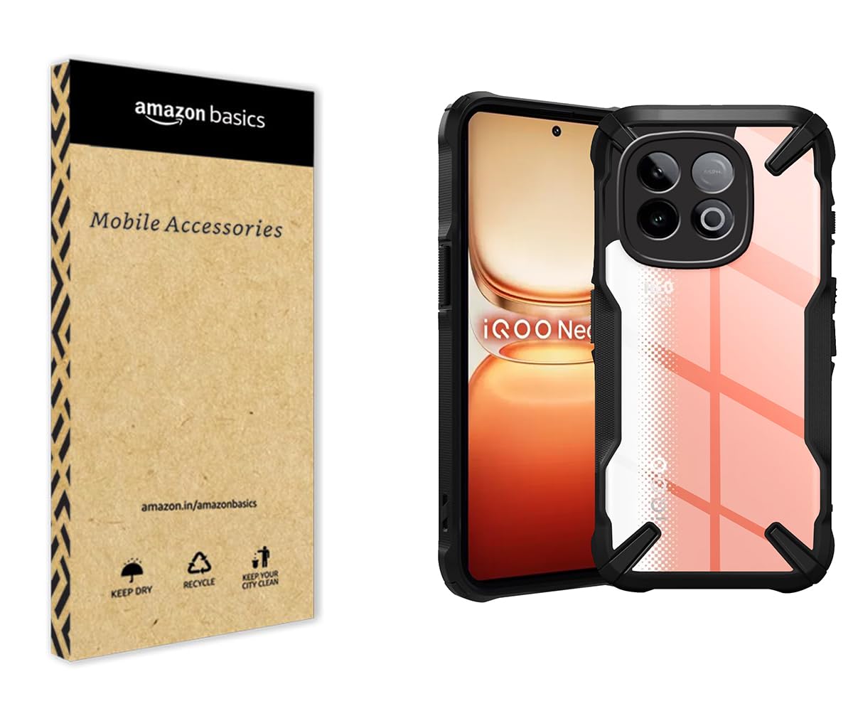 amazon basics Iqoo Neo 10 5G Back Cover | Crystal Clear Transparent Back | Ultra Hybrid | Full Camera Protection | Raised Edge | Bumper Back Case (Black)