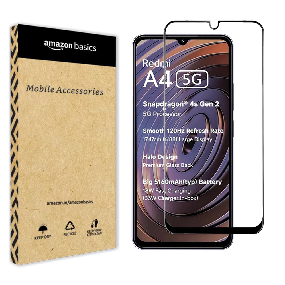 amazon basics Redmi A4 5G Ultra Premium Tempered Glass | HD clarity Full Edge Protection With Installation Kit for Redmi A4 5G