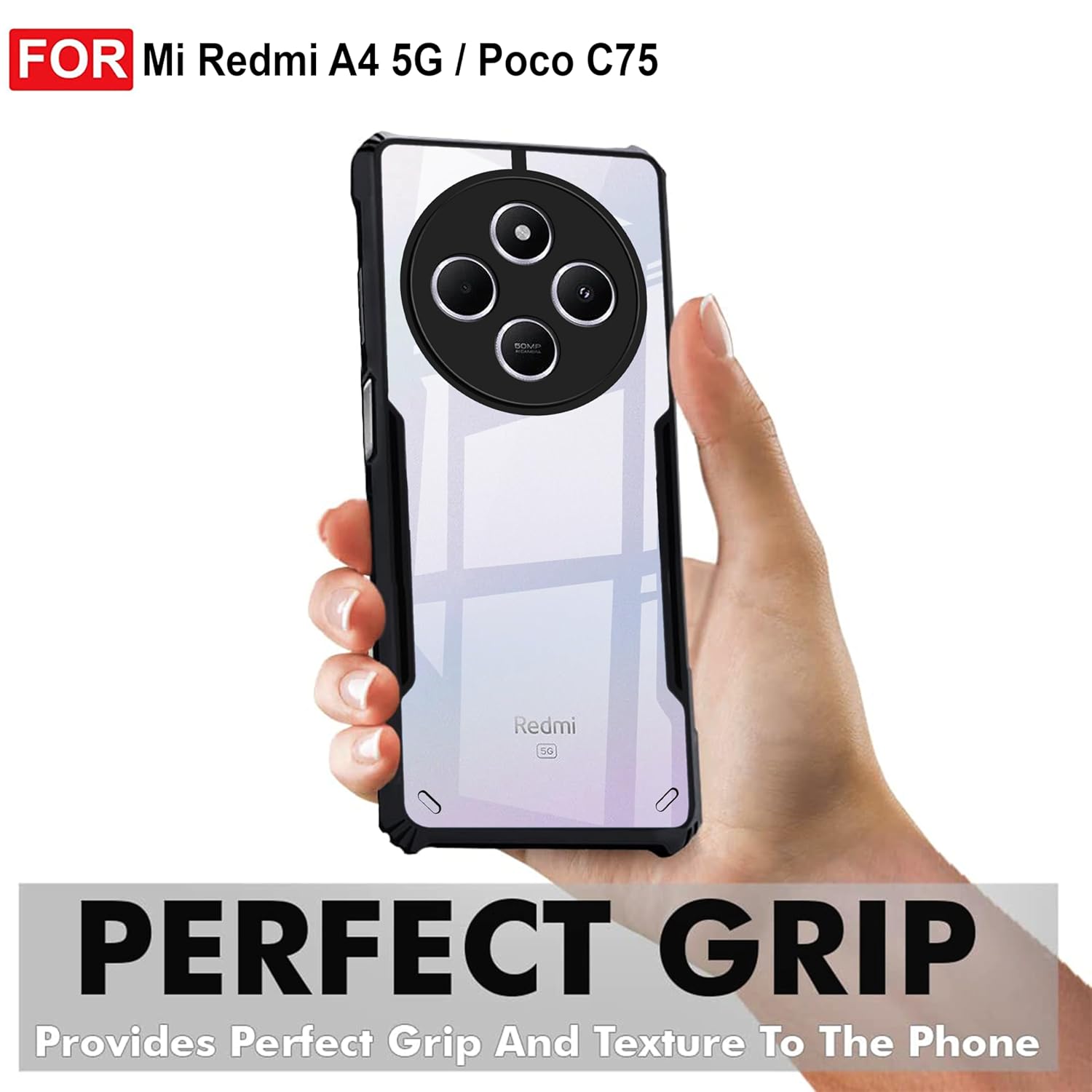 Amazon Brand – Solimo Back Case Cover for Mi Redmi A4 5G | Compatible for Mi Redmi A4 5G Back Case Cover | Clear Case with Camera Protection | (TPU + PC | Matte Black)