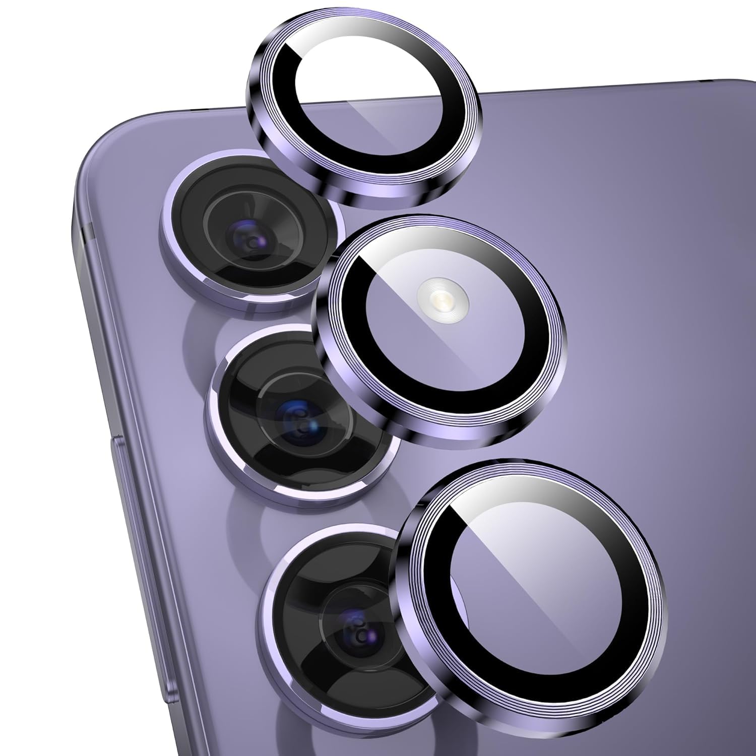 Amazon Brand – Solimo Camera Glass Lens Protector Ring For SAMSUNG Galaxy S24 5G Case Friendly with Edge-To-Edge Protector Coverage and Easy Installation, (Purple)