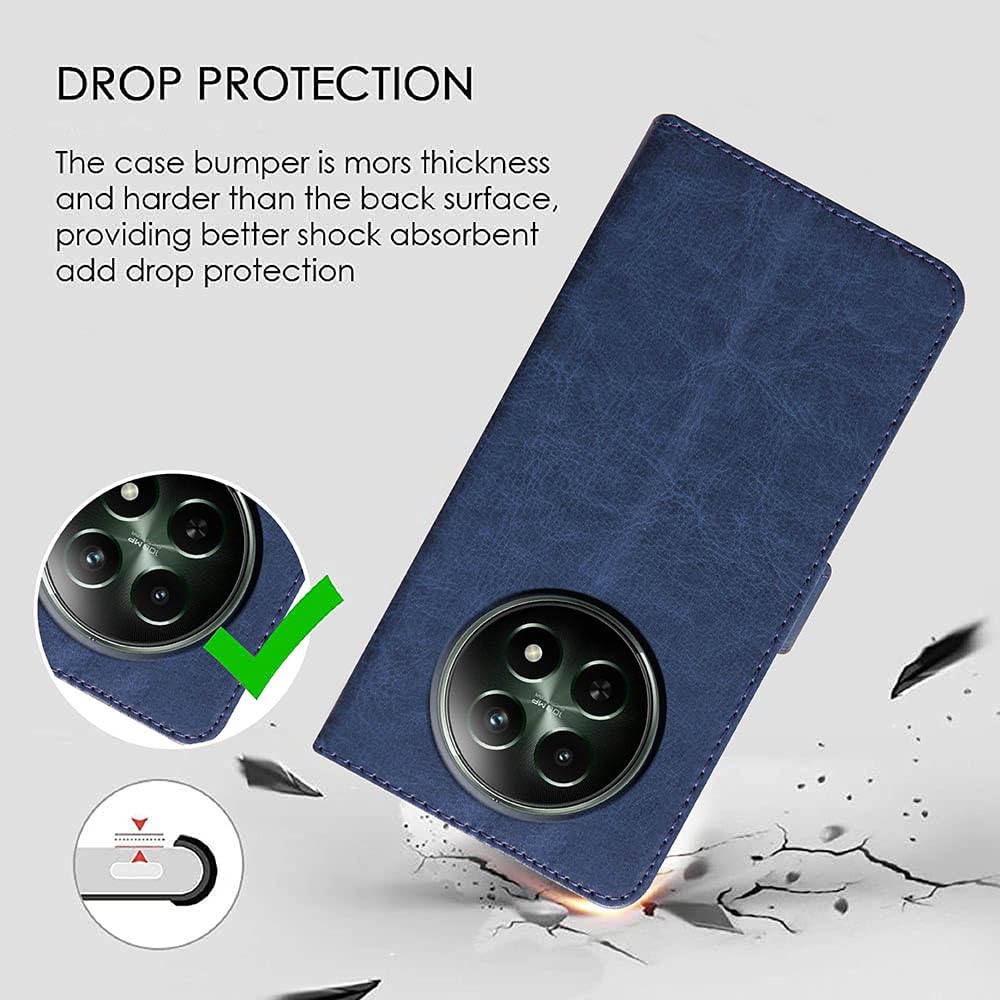 Amazon Brand – Solimo Flip Leather Mobile Cover (Soft & Flexible Back case) for Realme 12 5G / 12x 5G / C65 5G / Narzo 70x 5G / N65 5G (Blue)