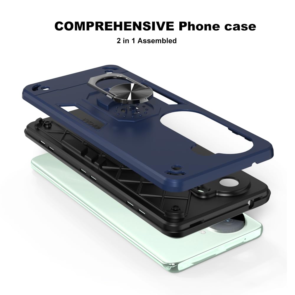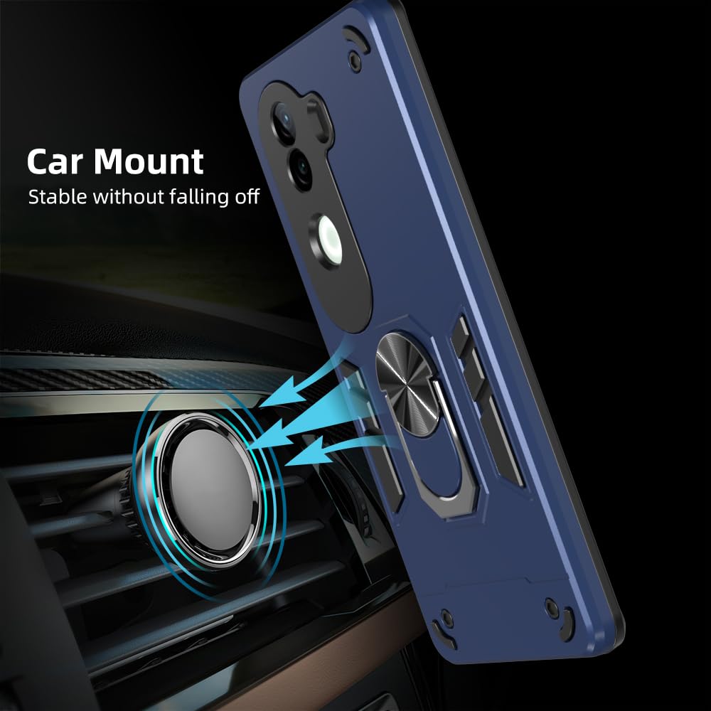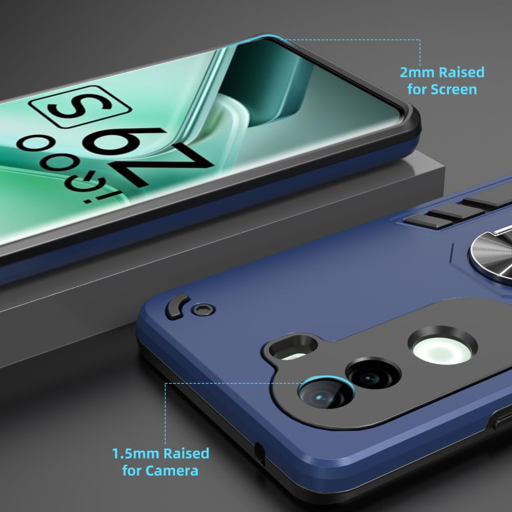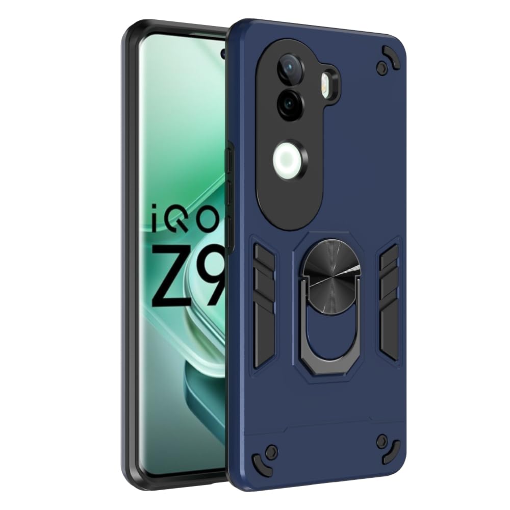 Amazon Brand-Solimo Kickstand Mobile Back Cover (360° Rotating Ring Holder) for Vivo V40e 5G / iQOO Z9s 5G (Blue)