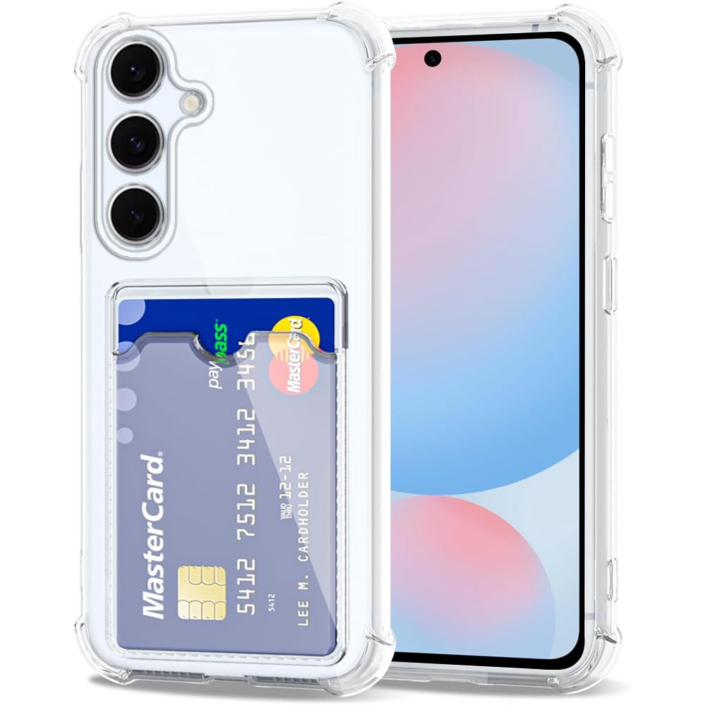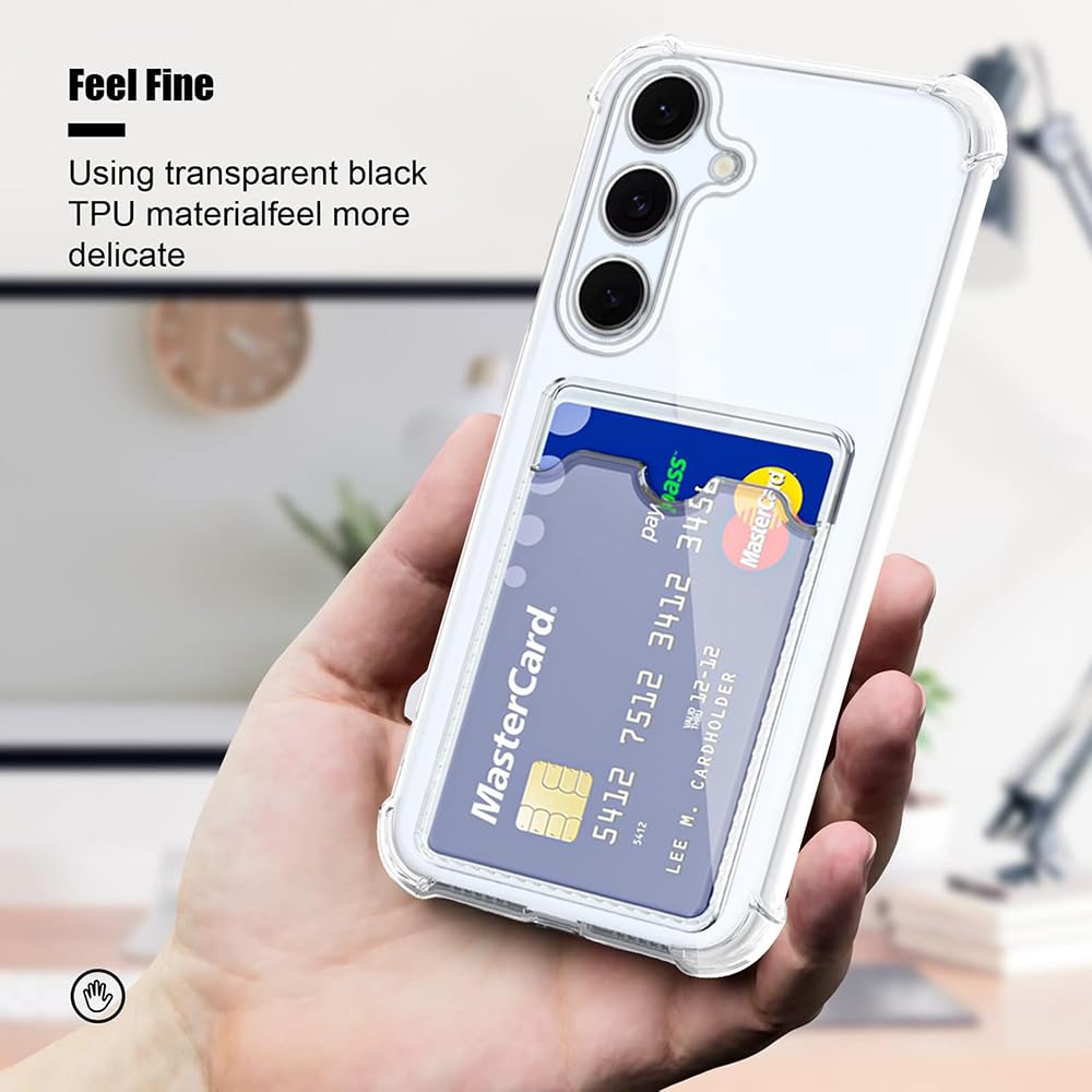 Amazon Brand-Solimo Premium Shockproof Transparent TPU Back Case Cover with Built-in Slim Card Holder Wallet for Samsung Galaxy S24 FE 5G – Clear