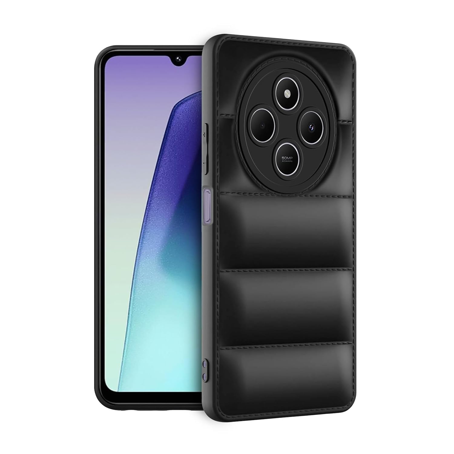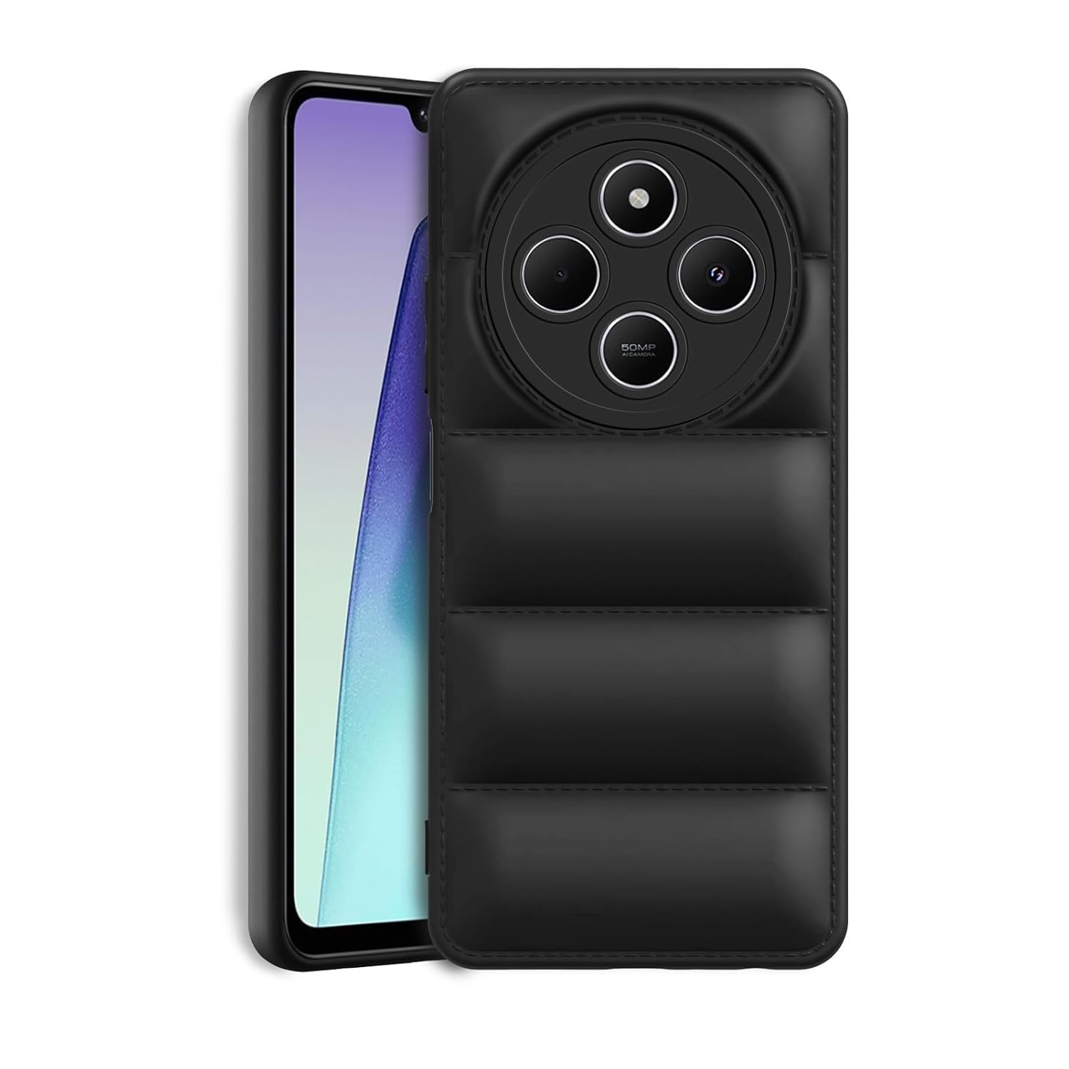 Amazon Brand – Solimo Puffer Case Camera Protection Soft Back Cover for Mi Redmi A4 5G / Redmi 14C 5G / Poco C75 5G – Black