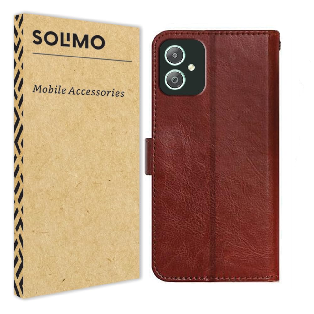 Amazon Brand – Solimo Shock Proof Flip Cover Back Case Cover for Samsung Galaxy M05 (Flexible | Leather Finish | Card Pockets Wallet & Stand | Chestnut Brown