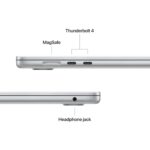 CONNECT IT ALL — MacBook Air features two Thunderbolt 4 ports, a MagSafe charging port, a headphone jack, Wi-Fi 6E and Bluetooth 5.3. And it supports up to two external displays.