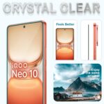 Compatible Device: This Tempered Glass is Perfectly compatible with IQOO Neo 10 and Neo 10R (6.78 Inch). Easy Installation: This is a edge to edge screen protector, Bubble free adhesive and easy to install. You can follow installation guidelines which printed on Installation guide. Box Includes: Tempered Glass, Wet wipe, Dry Wipes, Dust absorber sticker with installation guidelines.)