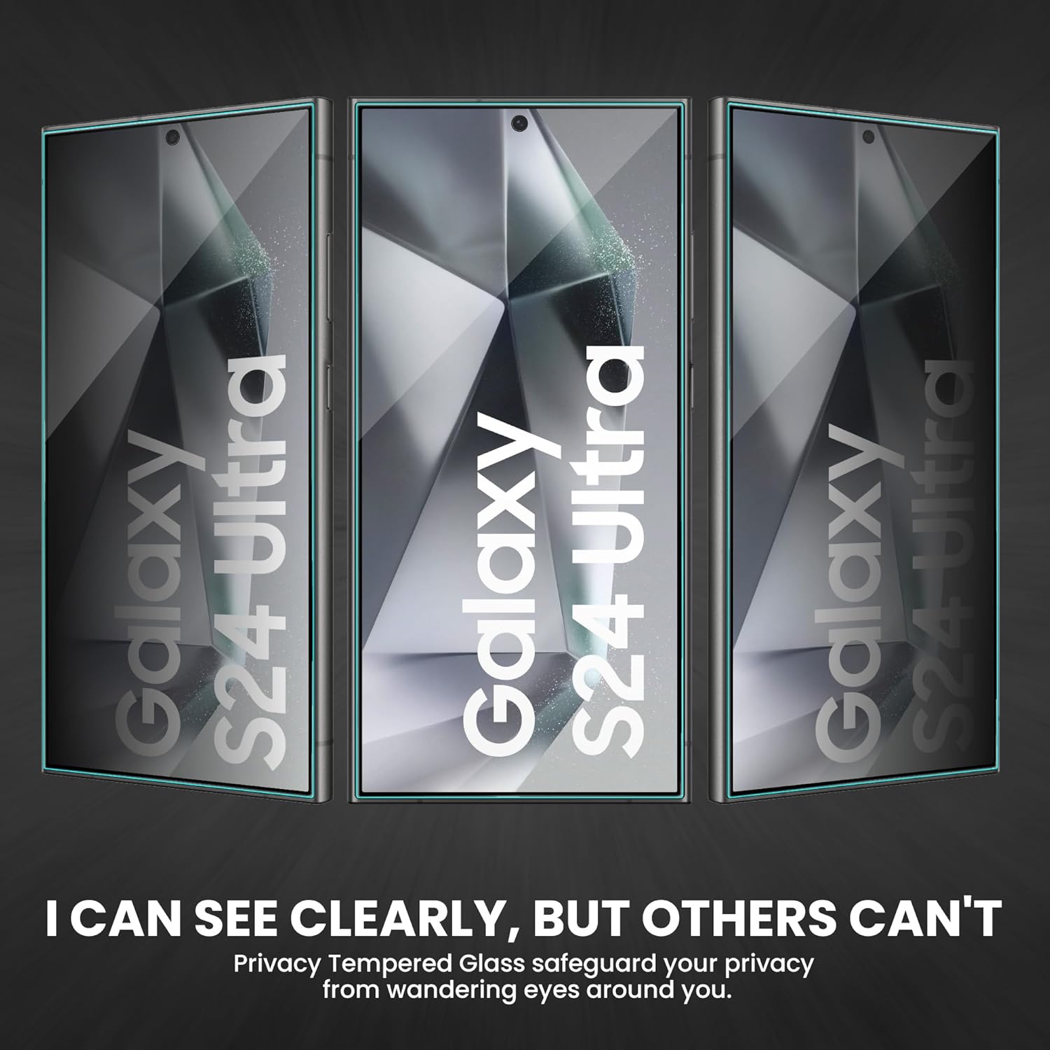 Best Quality: This Samsung Galaxy S24 Ultra Privacy screen guard is ultra-thin (0.33 mm thickness) which is made by precise laser cut, exquisitely polished, good rounded edges and compatible for 3D touch. This Samsung Galaxy S24 Ultra Privacy screen protector promises full compatibility with touchscreen sensitivity and HD Clarity which retains the experience of the original glass. This Samsung Galaxy S24 Ultra Privacy edge to edge tempered glass contains hydrophobic oleophobic screen coating which protects against sweat, oil and water.