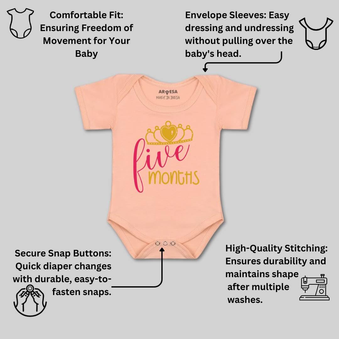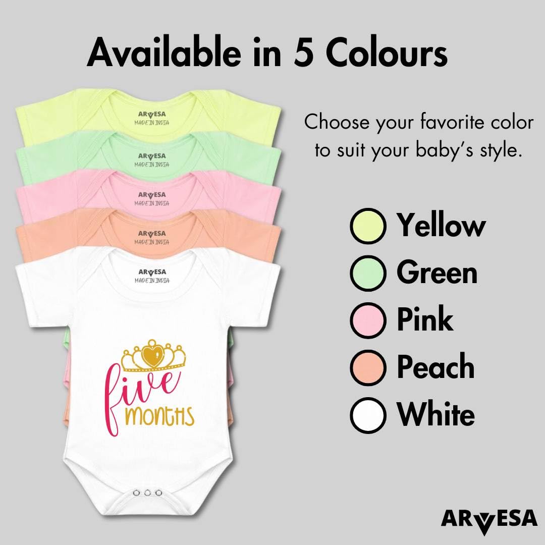 Dress Your Little One In Comfort And Style With Our Premium Arvesa New Born Clothes, Designed With Soft Breathable Fabric For Delicate Skin. Whether You Need A New Born Dress, A 1 Month Baby Boy Dress, Or 1 Month Baby Girl Clothes, Our Collection Ensures The Perfect Fit For Every Stage. Parents Love Our Versatile Range Including 0 Size New Born Baby Clothes, New Born Baby Dress For Girls, And New Born Baby Dress Boy, Along With Cute Outfits Like A 3 Months Baby Boy Dress Or 6 Month Baby Boy Dress. To Make Every Day Special, Our Rompers And Baby Bodysuits Come In Five Beautiful Colors – White, Peach, Pink, Green, And Yellow – With Unique Printed Designs For Occasions And Milestone Celebrations, Ensuring Your Baby Always Looks Picture-perfect. Growing Babies Stay Comfortable In 0-3 Months Baby Boy Clothes, Baby Boy Dresses 0-3 Months, And Newborn Baby Girl Dress 0-3 Months, While Practical Options Such As Baby Bodysuit For 3-6 Months, Baby Bodysuit For 6-9 Months, And Baby Rompers 6 To 9 Months Keep Them Cozy And Stylish. Seasonal Picks Like Baby Winter Clothes 6-12 Months Provide Warmth, While Stylish Outfits Such As A Jumpsuit For Kids, Rompers For Baby Girl 3-6 Months, Or A Dress For Baby Girl 6-12 Months Make Dressing Fun And Easy For Photoshoot Prop . With Thoughtful Stitching And Durable Quality, Our Outfits Are Perfect For Daily Wear, Gifting, And Celebrations.
