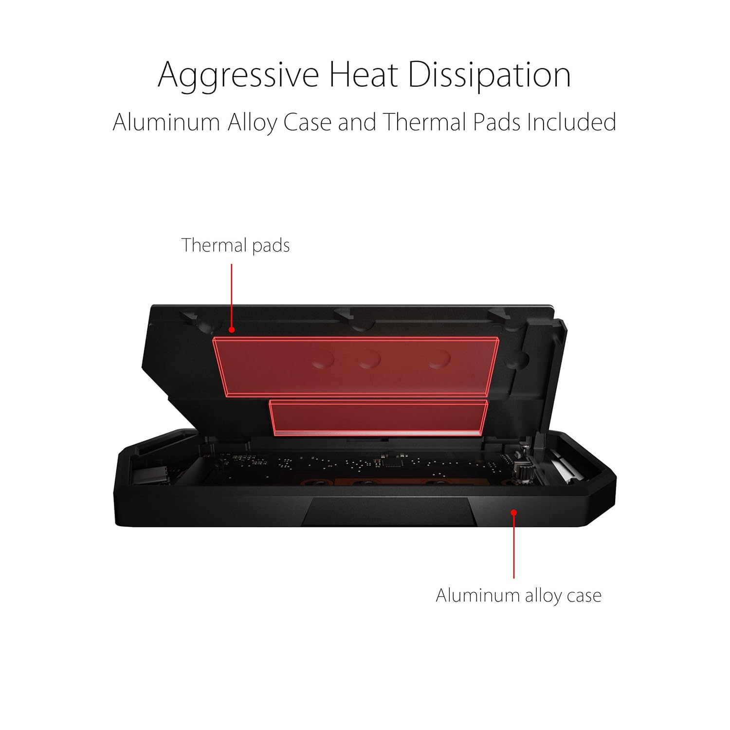 Aluminum Alloy ROG Case with thermal pads pulls heat away from M 2 drives