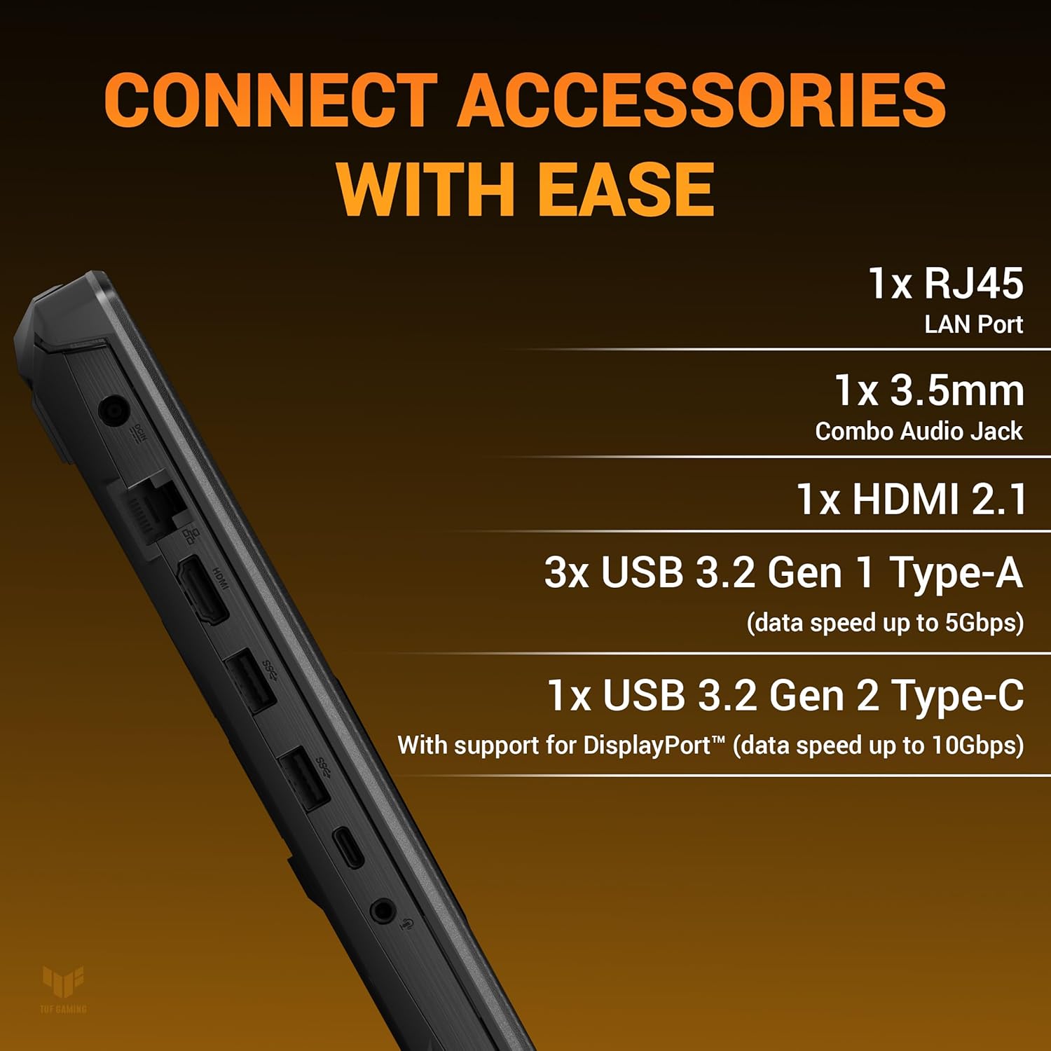 ASUS TUF A15, AMD Ryzen 7 7445HS, Gaming Laptop(RTX 3050-4GB/75W TGP/16GB RAM/512GB SSD/FHD/15.6″/144Hz/Backlit Keyboard/48Whrs/Win11/MS Office24/Graphite Black/2.3 Kg) FA506NCG-HN200WS
