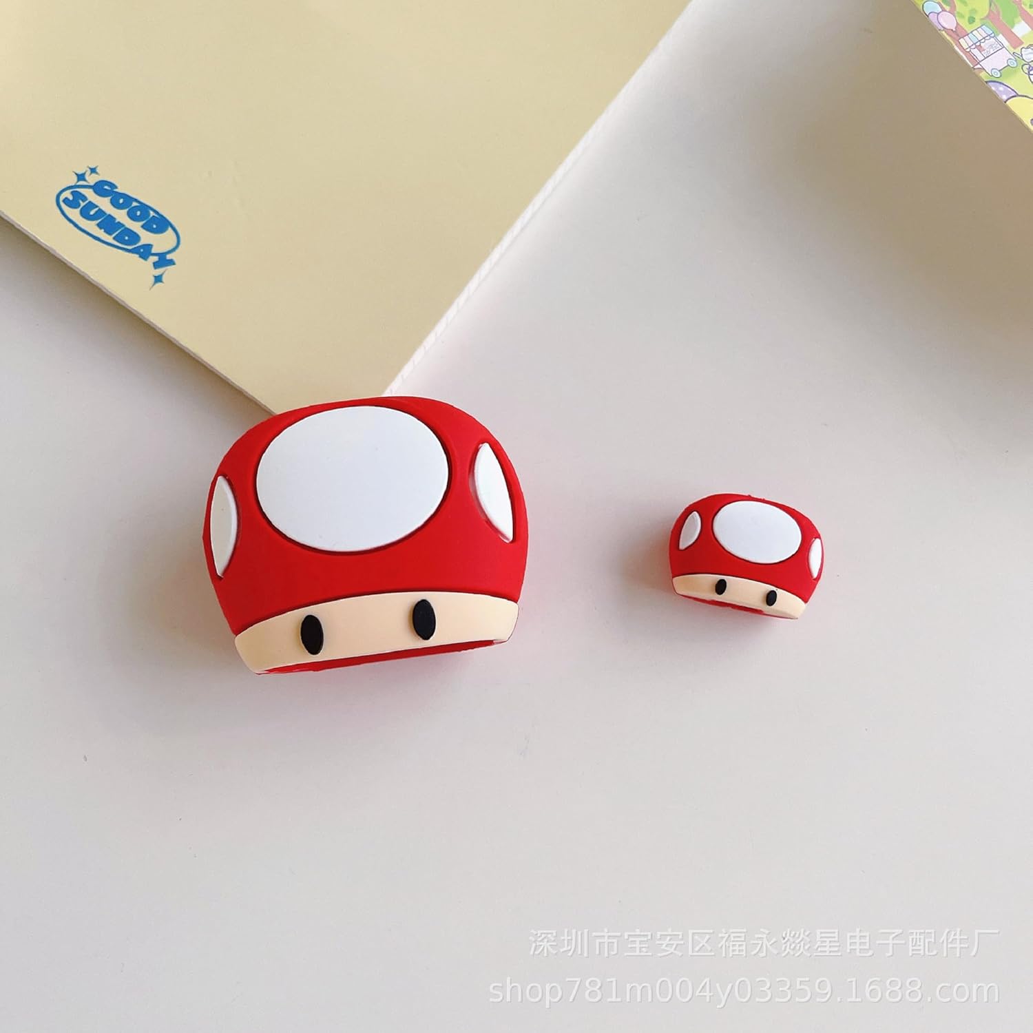 AUGEN Cartoon 3D Design Protective Case for 20W iPhone USB-C Power Adapter Charger, Cute Cartoon Lightning Data Cable Case for iPhone Charger (Super Mushroom, Pack of 1)