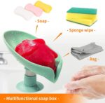black sparrow Leaf-Shape Self Draining Soap Dish Holder, Easy Clean Soap Dish for Shower with Suction Cup Creative soap Box, for Bathroom, Kitchen, Bathtub, Wash basins