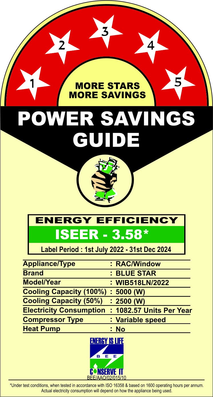 Blue Star 1.5 Ton 5 Star Inverter Window AC (Copper Condenser, Dust Filter, WIB518LN)