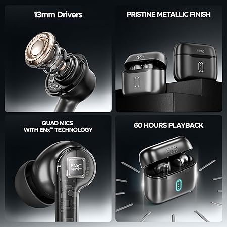 • Attractive Metallic Finish: Flaunt the eye-catching metallic build of your Airdopes whenever you step out. With a touch of sophistication, these earbuds are a must-have audio accessory!