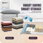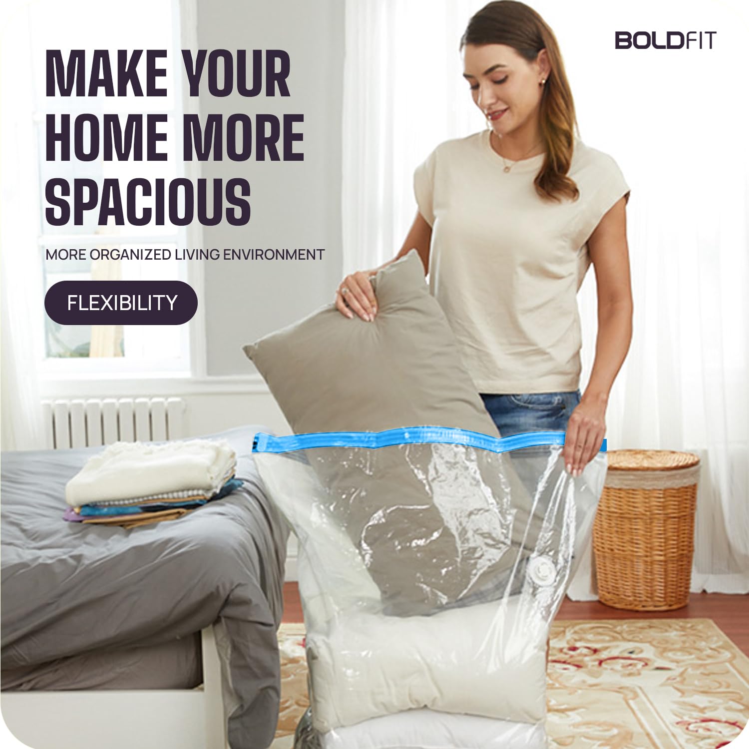 Boldfit Plastic Reusable Vacuum Bags For Clothes With Pump For Space Saving Travel Ziplock Bags For Travel Packing Blankets Compression Vacuum Storage Bags,Vacuum Bag,Set Of 3(Small),Transparent